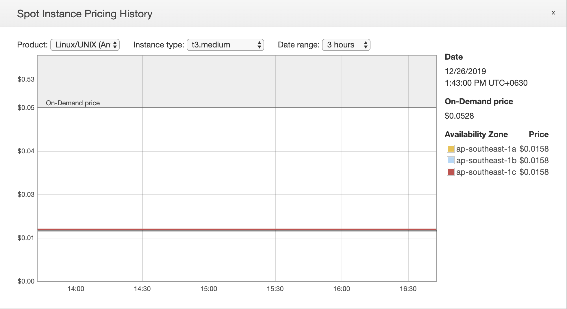 ပုံမှာမြင်ရတဲ့ အတိုင်းဆိုရင် EC2 Instance T3.medium ရဲ့ On-demand price က $0.0528/hr ကျသင့်မှာဖြစ်ပြီးတော့ Spot Price နဲ့ဆိုရင်တော့ $0.0158/hr ပဲကျသင့်မှာဖြစ်ပါတယ်။ 70% လောက်ကိုသက်သာပါတယ်။ Instance Size ကိုမူတည်ပြီး စျေးနှုန်းတွေလည်း မတူနိုင်ပါဘူး။ တစ်ချို့ Instance Type တွေဆိုရင် 70%-90% လောက်ထိသက်သာပါတယ်။